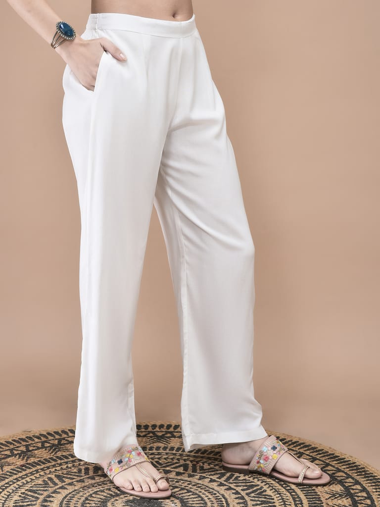 Women Cotton Off White Yarn Dyed Kurta Comfort Pant Dupatta