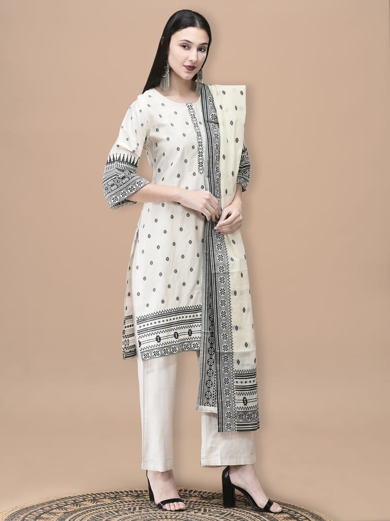 20593_BEIGE-SWomen Silk Jacquard Beige Solid Kurta Comfort Pant Dupatta